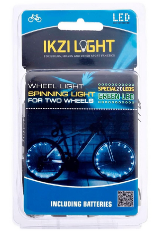 Veilig op de fiets met de coole LED-verlichting van Ikzi light. Hiermee val jij zeker op op straat! Deze fietswiel verlichting is geschikt voor ̩̩twee fietswielen. Bevestiging aan het wiel gaat eenvoudig met de meegeleverde tiewraps. De fietsverlichting wordt inclusief batterijen geleverd, is waterdicht en makkelijk te installeren.