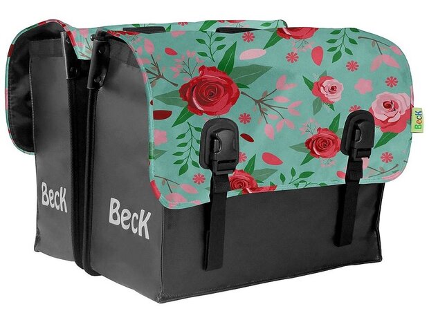 Bloemen maken alles sfeervol, dus ook je fietstas! Pimp je fiets met deze leuke fietstassen met een print van rode en roze rozen op een mooie blauwe kleur. De waterdichte fietstassen zijn gemaakt van bisonyl en kunnen wel tegen een stootje. Met een inhoud van 46 liter in totaal, kun je heel wat spullen meenemen! Bijvoorbeeld je schooltas, je sportspullen of de boodschappen.